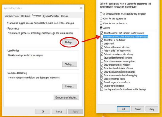 Paso 3: Desmarque la casilla “Animar las ventanas al minimizar y maximizar” en ingles “Animate windows when minimized and maximizing”, y luego haga clic en Aplicar.